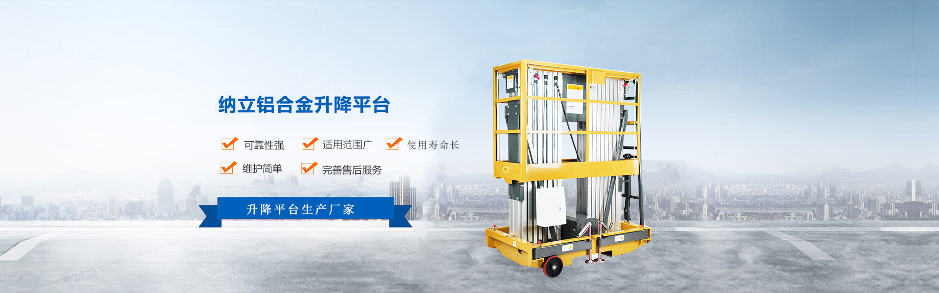 寧波納立升降機(jī)械有限公司座落于經(jīng)濟(jì)沿海城市浙江省余姚,為工程機(jī) 械協(xié)會(huì)會(huì)員單位,是致力于高空作業(yè)平臺(tái)的設(shè)計(jì)、研發(fā)、生產(chǎn)及銷售為一體的綜 合性制造企業(yè),是專業(yè)生產(chǎn)液壓升降臺(tái)及高空作業(yè)平臺(tái)的廠家。創(chuàng)立至 今,擁有一支成熟的設(shè)計(jì)和制造隊(duì)伍,經(jīng)過(guò)長(zhǎng)期對(duì)液壓升降臺(tái)的研制和探索,積 累了豐富的專業(yè)制造技術(shù)和寶貴經(jīng)驗(yàn),依托嚴(yán)格的生產(chǎn)工藝和時(shí)代特色的設(shè)計(jì)方 案,憑借豐富的專業(yè)技術(shù)及納立人不斷開拓創(chuàng)新、精益求精的精神,發(fā)展成為專 業(yè)制造液壓升降機(jī)械的優(yōu)質(zhì)聞名企業(yè)。